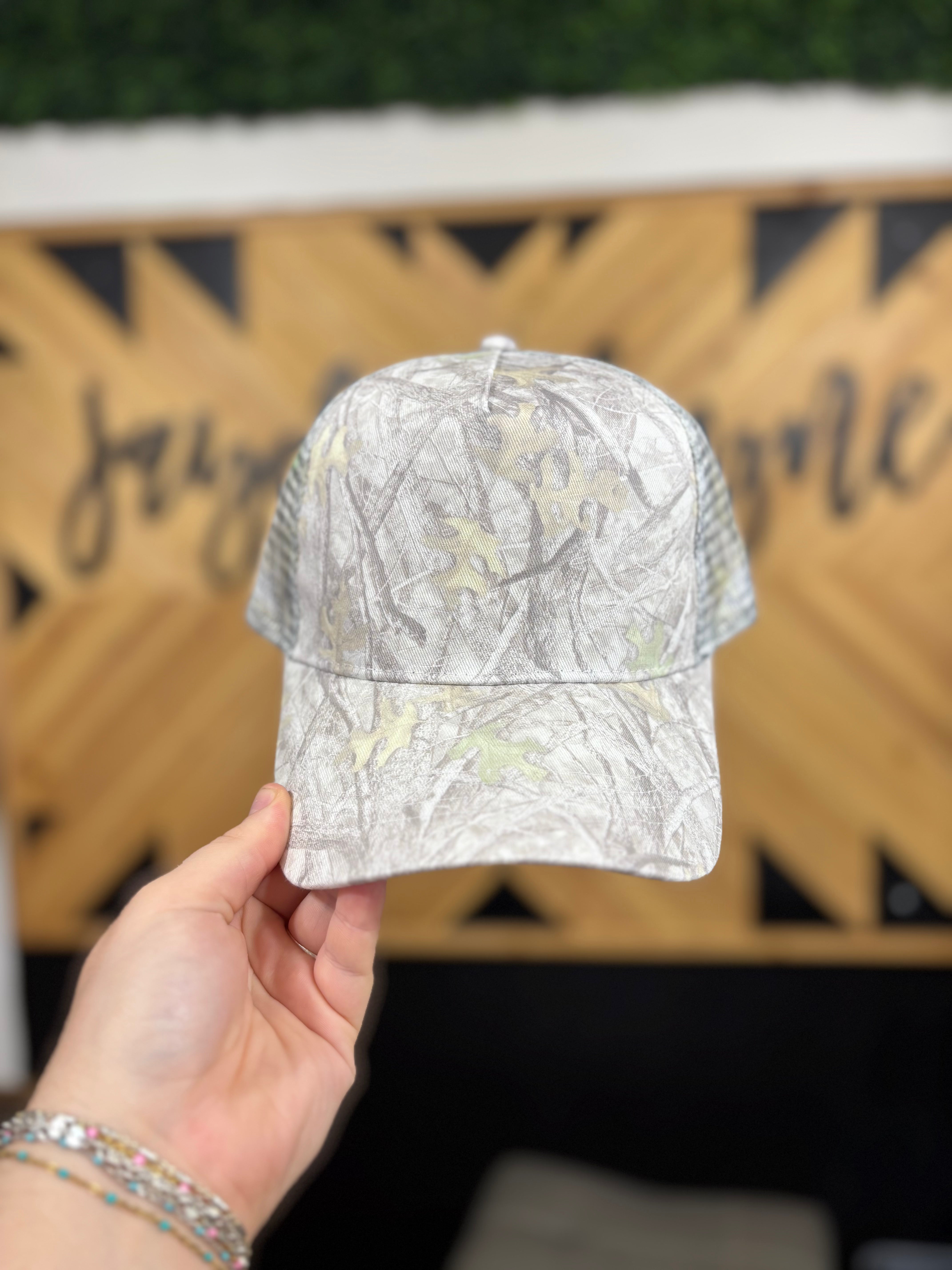 The Camo 5-Panel Trucker Hat is built for adventure—whether you're deep in the woods or just running errands. With a structured front, breathable mesh back, and adjustable fit, it's as practical as it is cool. Rock it as-is or swing by the Hat Bar to add custom patches and make it yours.