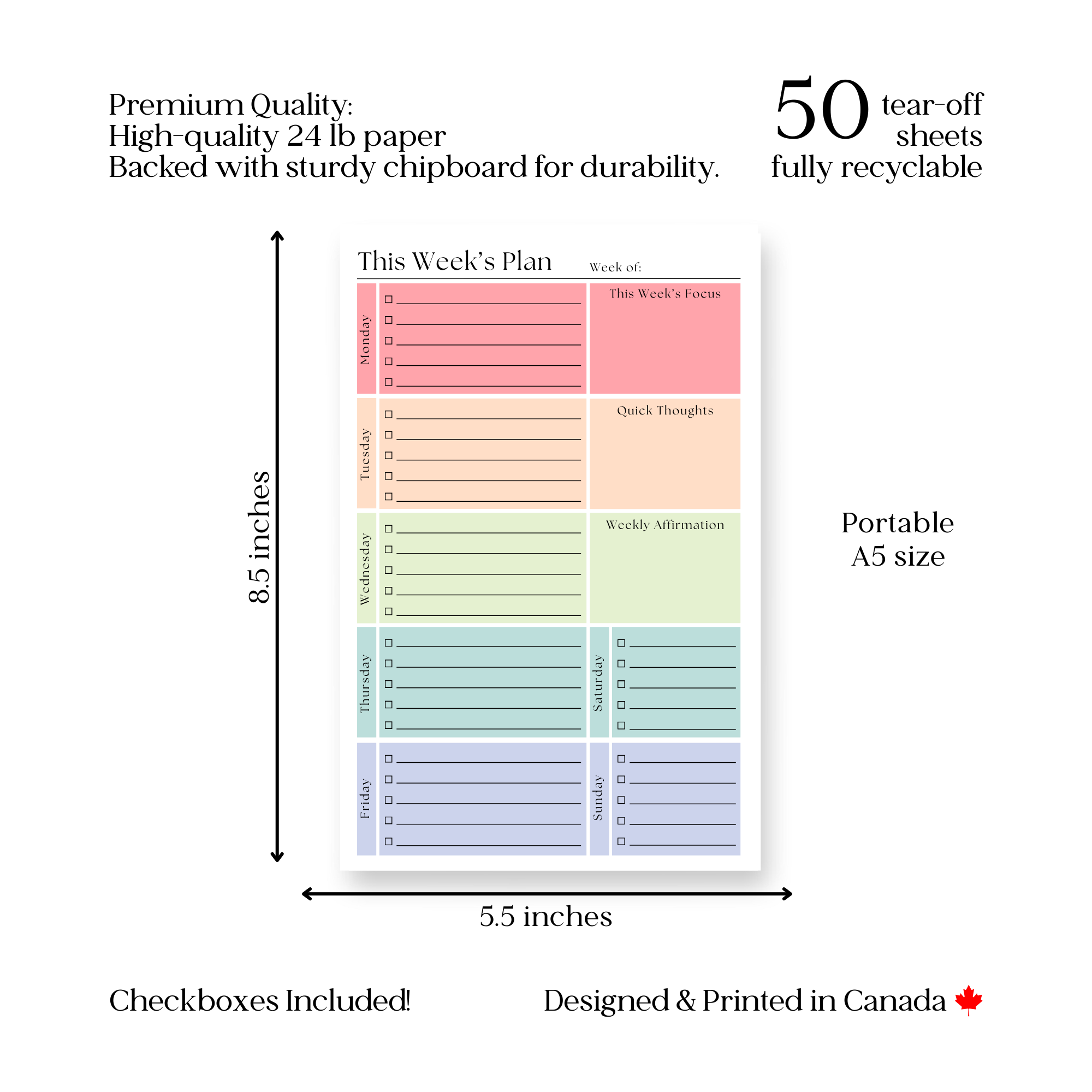 This Week's Plan To-Do List: 50-Page Tear-Off Notepad