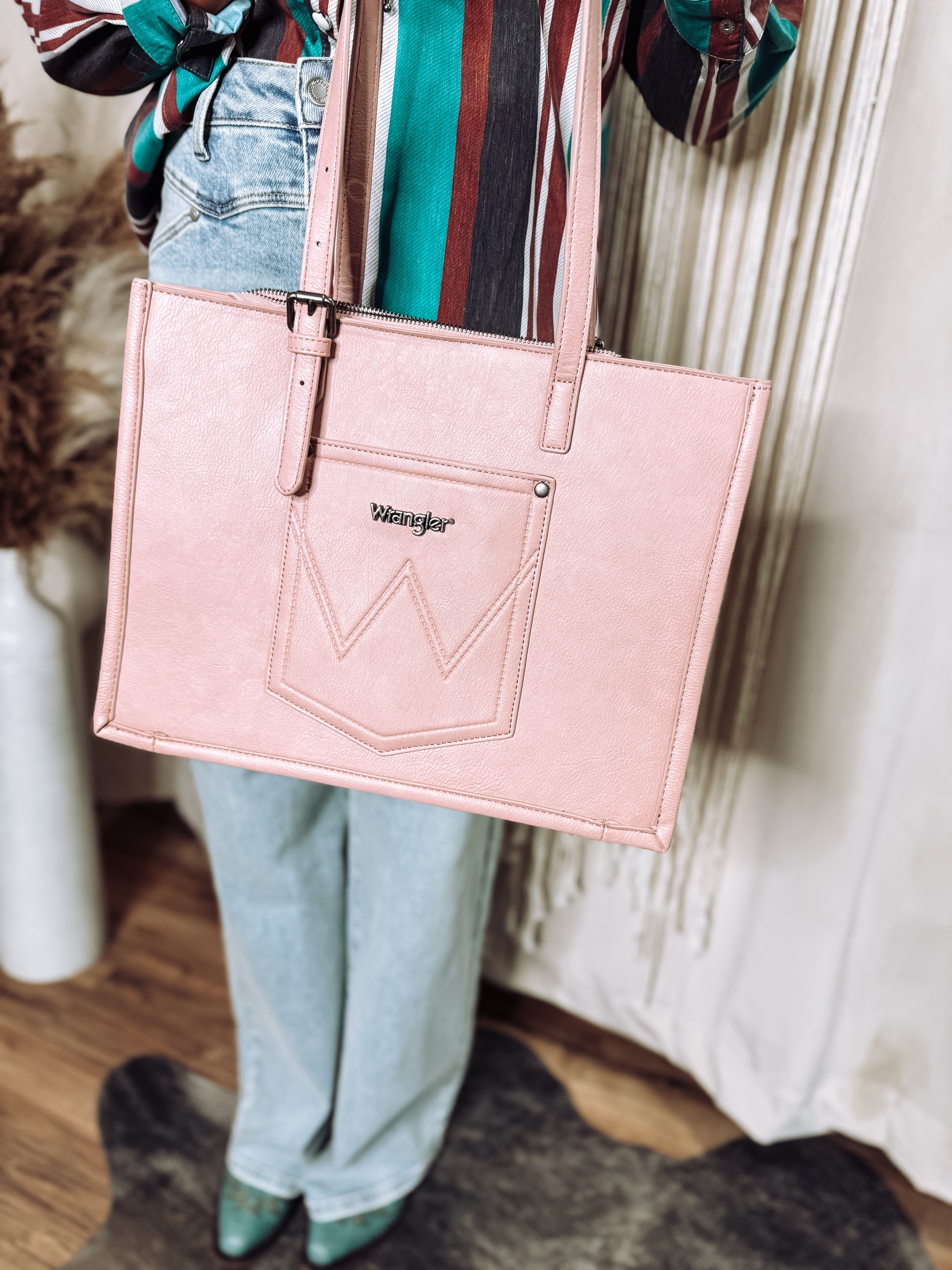 The Wrangler Tote is the perfect blend of rugged durability and bold Western charm. Crafted from high-quality synthetic leather, this tote offers a sleek, resilient finish that stands up to daily wear. Its standout feature is the antique silver turquoise stone concho, adding authentic Southwestern flair to your look. Designed with practicality in mind, the tote includes a secure top zipper closure, an interior zippered pocket, two open pockets, and a back open pocket to keep your belongings safe and organized. Metal feet on the bottom provide added protection and stability, while the spacious interior (14.5"L x 4"W x 11"H) easily accommodates all your daily essentials. With double shoulder straps for versatile carrying options, this tote is as functional as it is stylish.