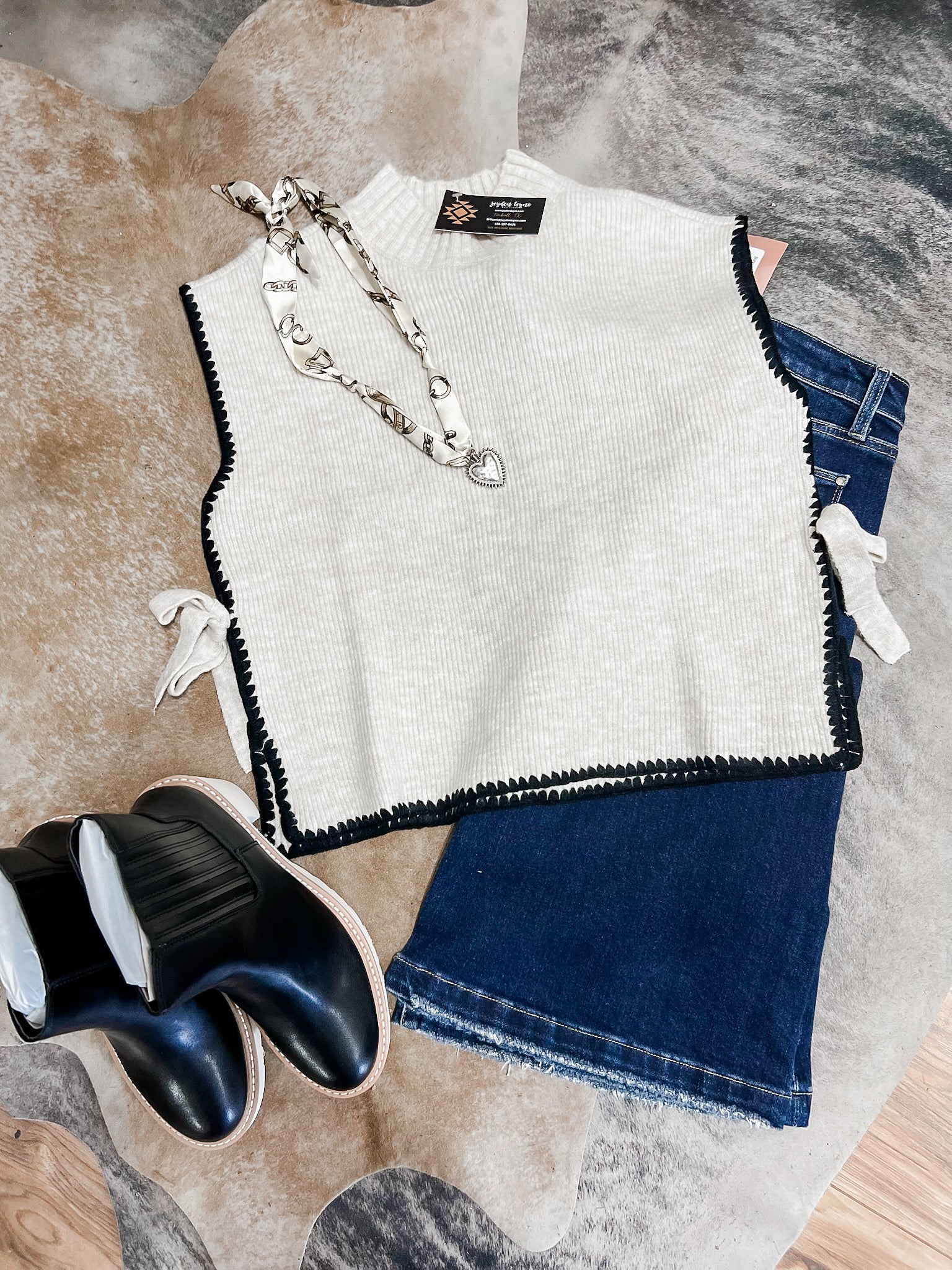 Oatmeal mock neck side tie sweater top