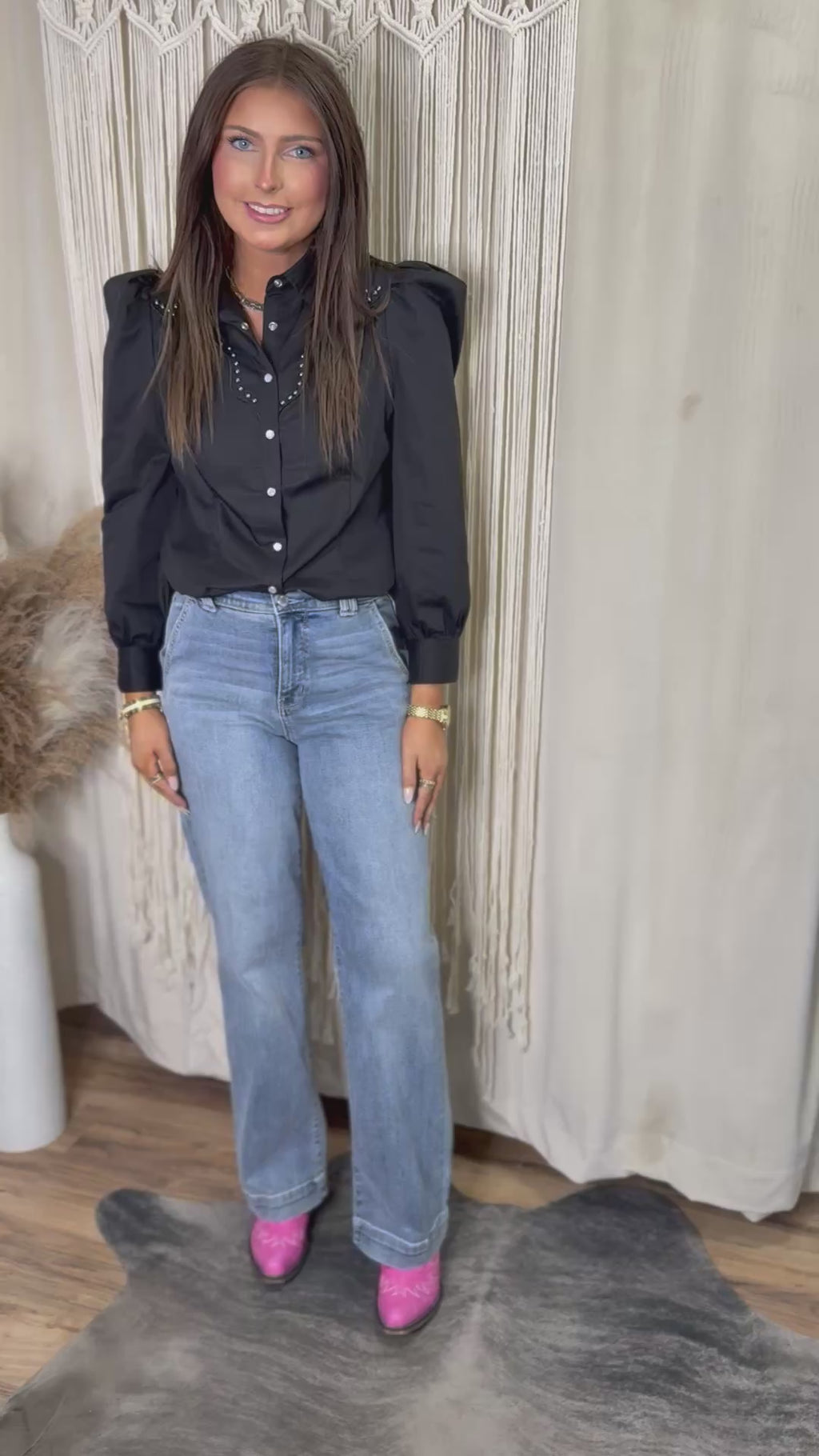 Black Pearl Snap Studded Blouse — Western Chic, No Apologies 🖤✨
