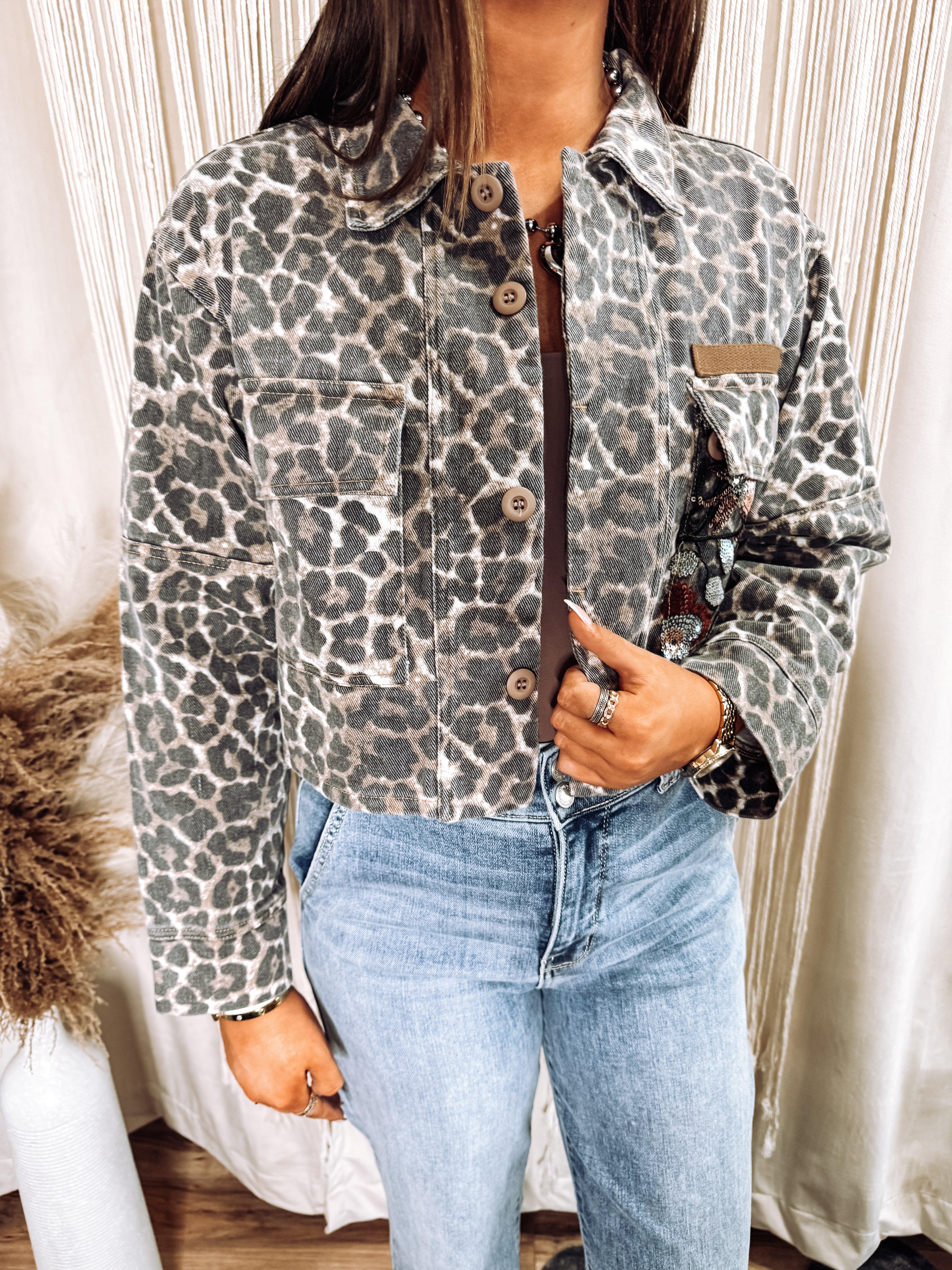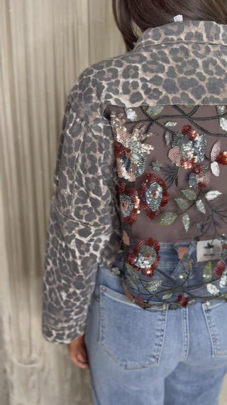 Leopard Denim Jacket with Sheer Floral Back — Statement Made Easy 🐆🌸