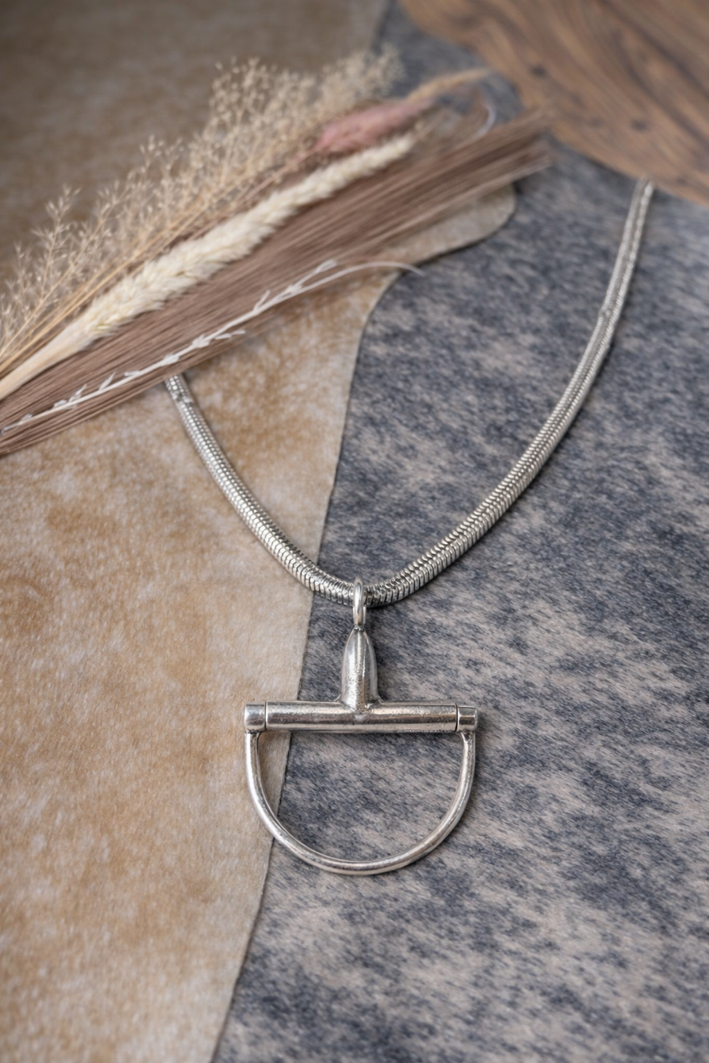 This 18” snaffle bit necklace features a classic horse bit pendant on a sleek silver snake chain — the perfect everyday Western jewelry piece that layers beautifully or stands strong on its own.