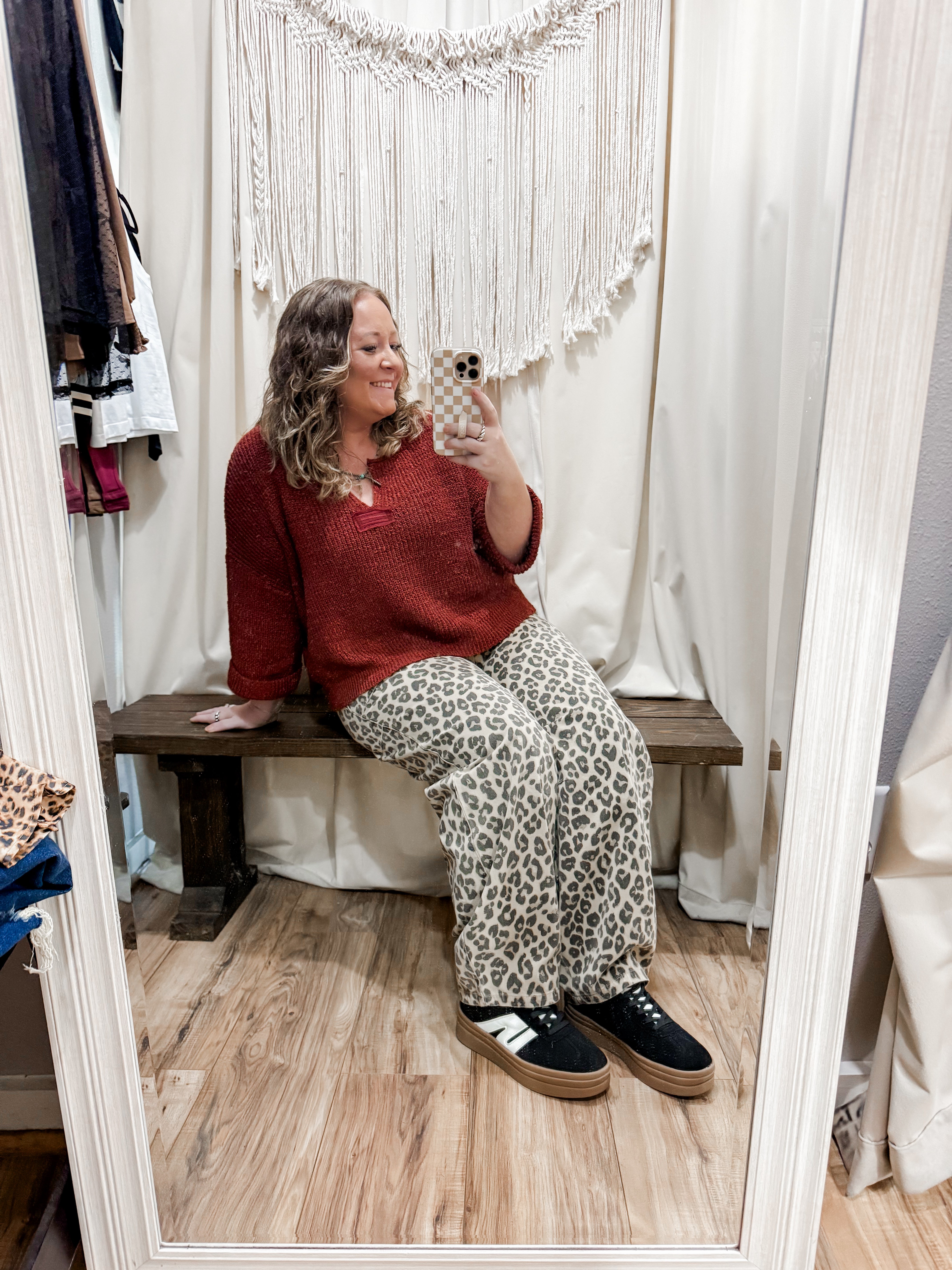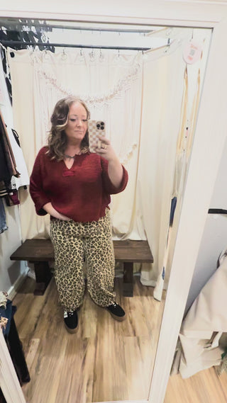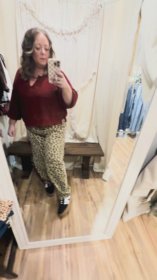 Slip into effortless style with our Leopard Mid Rise Wide Leg Barrel Jeans. These beauties are a fun twist on your go-to denim, blending a sleek mid-rise fit with a flattering wide-leg barrel silhouette. The leopard print detail adds just the right amount of sass, making them perfect for dressing up or keeping it casual.