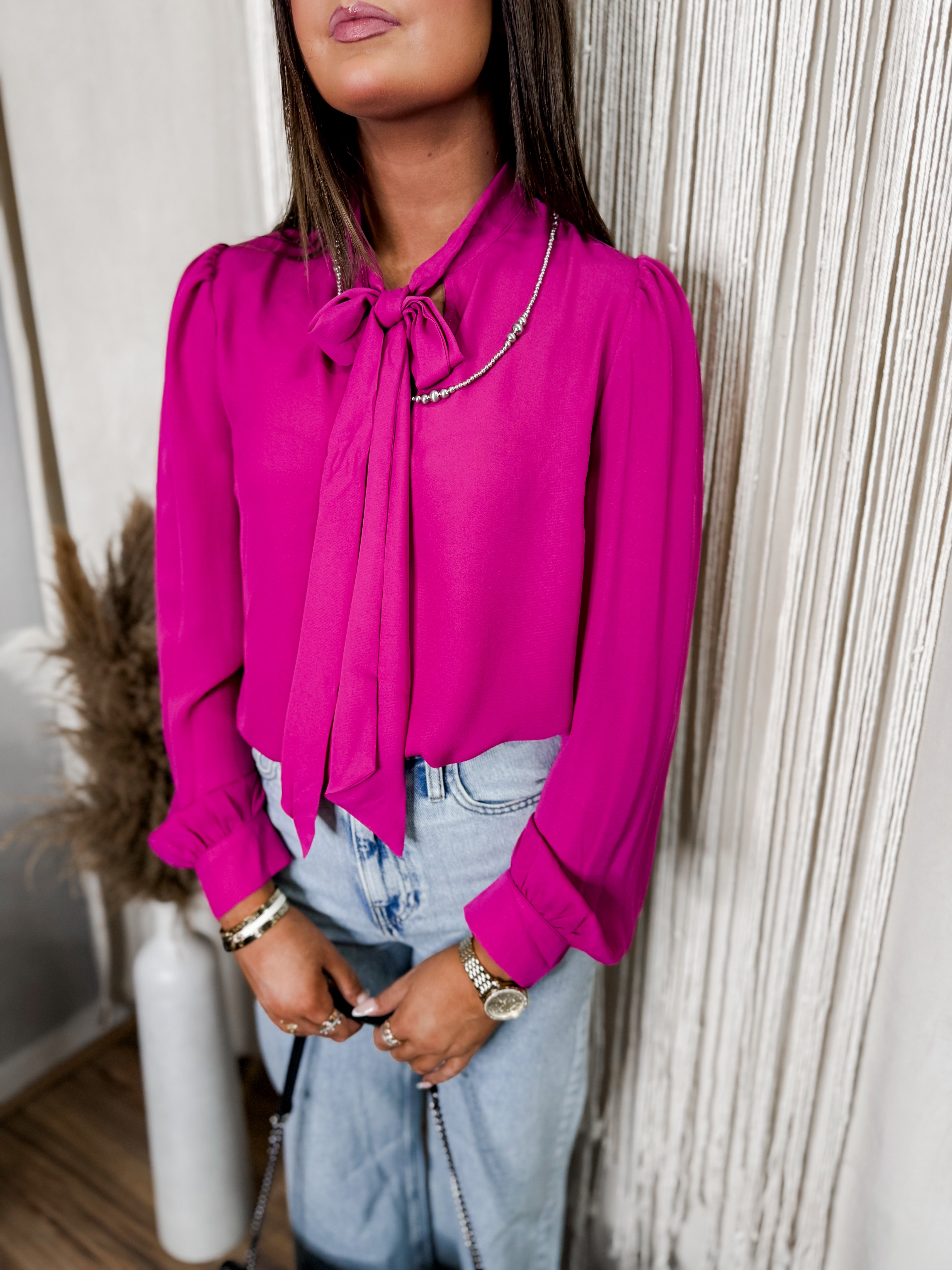 Magenta Front-Tie Bow Blouse — Because Sometimes You Need to Look Like You Tried